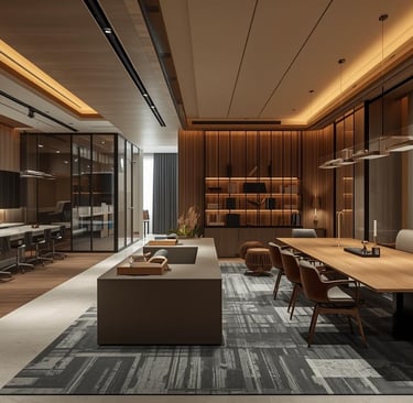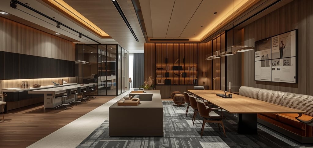 Corporate Offices: Luxury executive desks and ergonomic seating for professionals.